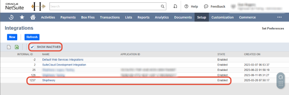 Once on the integrations page check to see if you can find the integration named "Shiptheory". If, for whatever reason, you have multiple integrations called Shiptheory, then the integration record's ID to check for is "custinteg_e742b0f7af61".