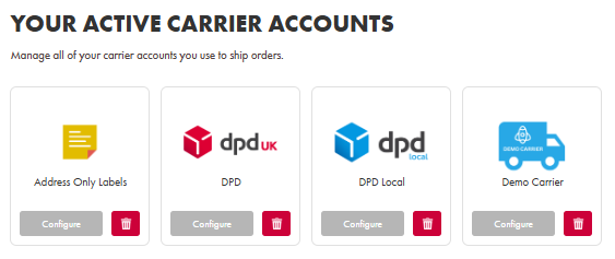 To use your own vehicles for deliveries, you will need to setup your courier's page so that, Address Only Labels is used for courier's, Shiptheory supports a feature called 'Address Only Labels', these labels aren't booked in with a carrier but instead are created by Shiptheory to be used for your own personal delivery vans. These labels are also often used for testing as the shipments aren't booked in with a carrier so there's no need to cancel the shipments with anyone.