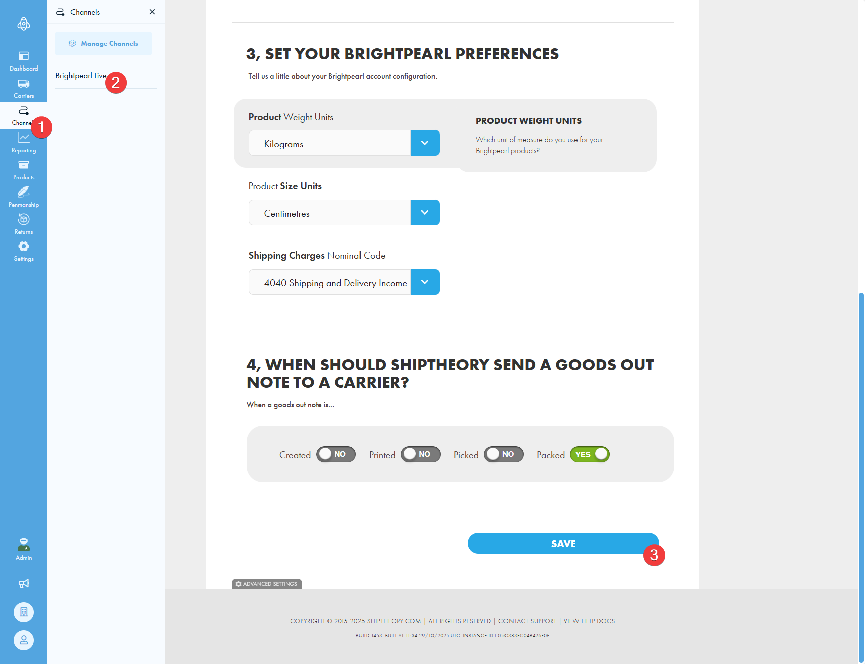 If you make any changes in Brightpearl and need them updating in Shiptheory, you'll need to re-save the connection in your Brightpearl settings.