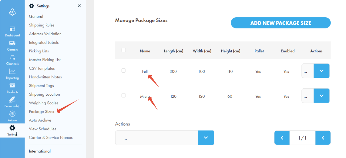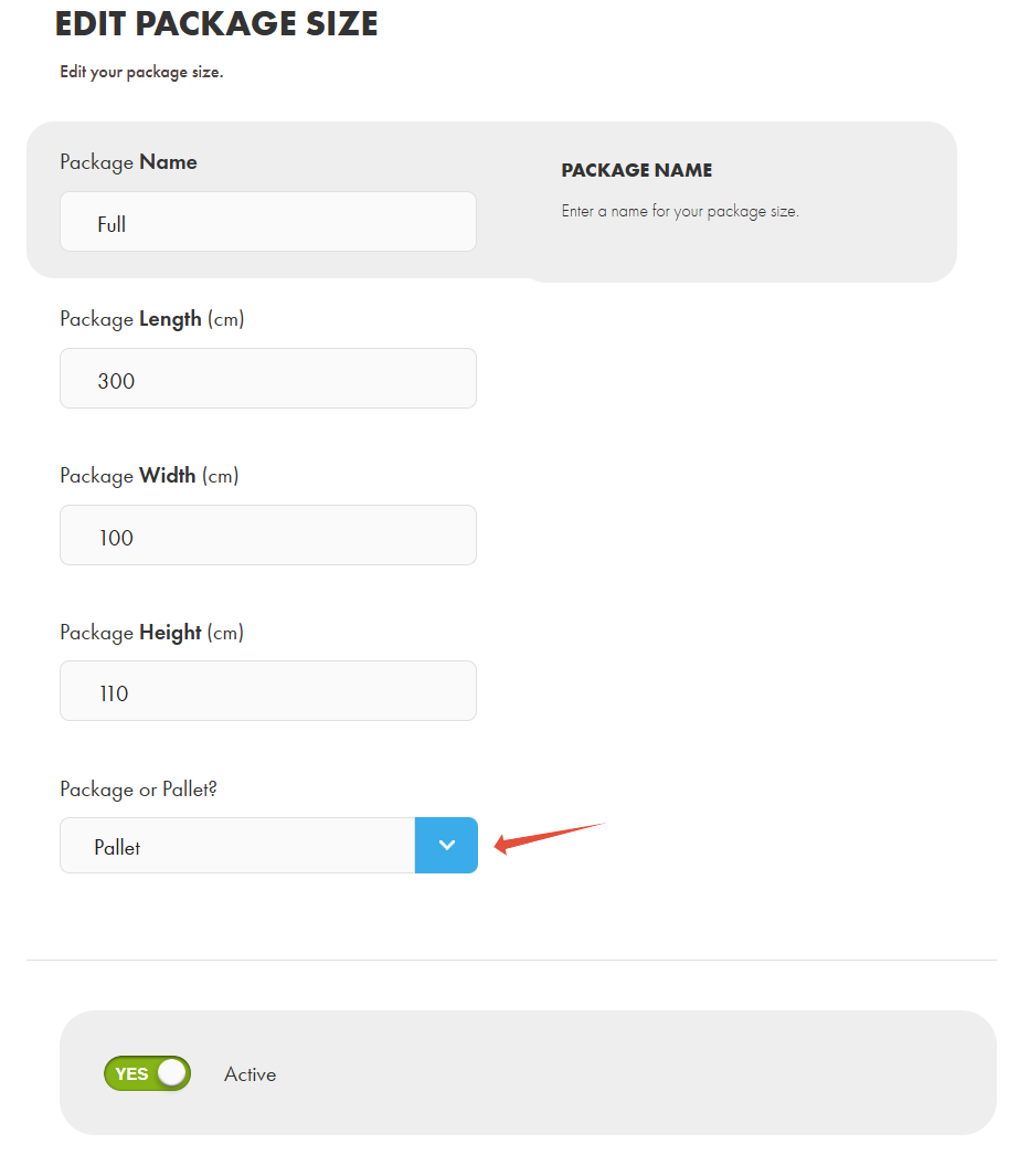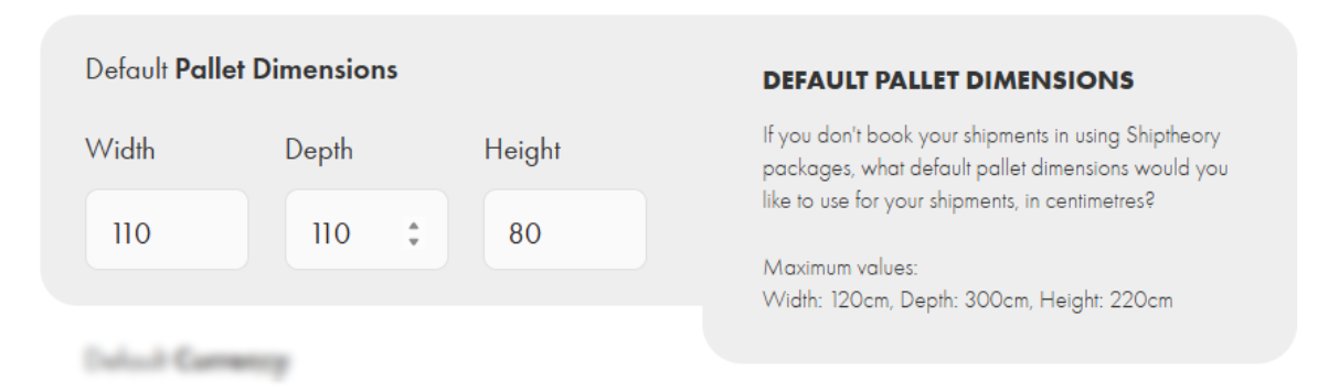 When booking a shipment, select the supported Pallet from the list. Shiptheory will automatically find a suitable size for your with the default dimension specified in the setting.
