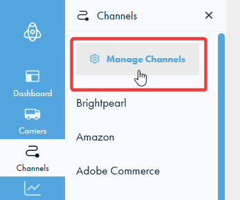 1. Go to the Manage Channels page. You can find this by hovering over the channels icon on the left handside of your screen and then clicking Manage Channels.