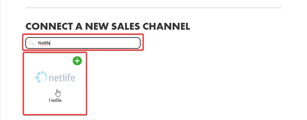 2. Scroll down to the connect channels section. Either type "Netlife" into the search bar or scroll until you find the Netlife integration card. Click on the Netlife integration card.