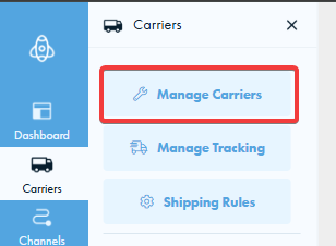 To connect your new Palletline instance in Shiptheory, please select the carrier button on the left and press Manage Carriers.
