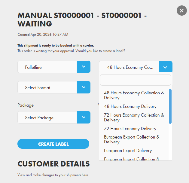 You are now ready to book with Palletline! Simply press the Create Label button to generate your shipment label, then press Download Label to save it.