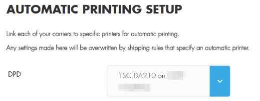 For example, the setting below sets it so that all DPD orders will automatically be printed out of the TSC printer selected.