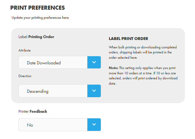 Additionally you can control the order in which your labels are automatically printed. There are three options for this: