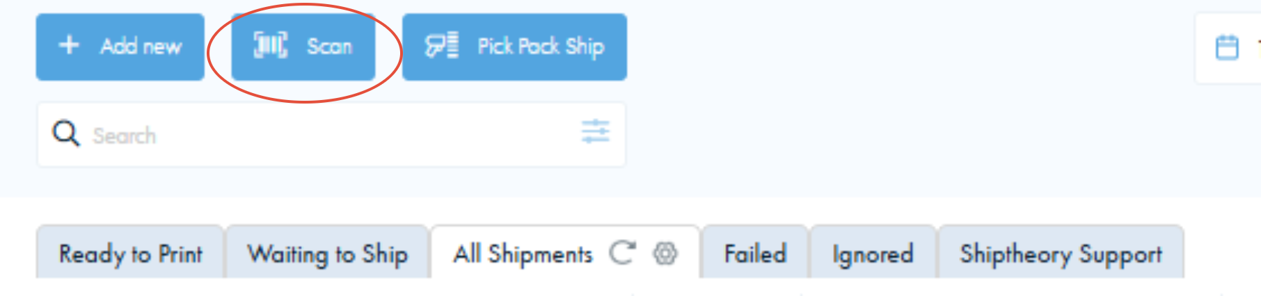 To access this page, click on the barcode scanner icon on your Shiptheory dashboard: