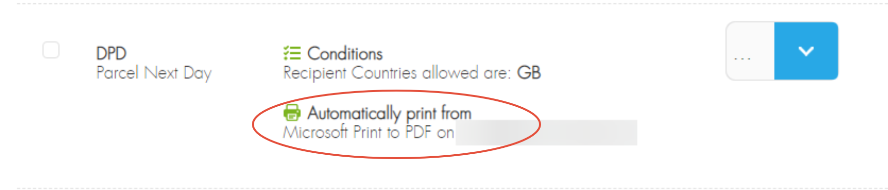 In this example, we'll use the above DPD rule. Click edit from the dropdown, and within the rule select an automatic printer, as you can see here: