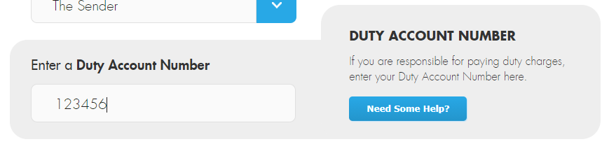 Entering a value into these fields will make you responsible for any duty charges incurred.